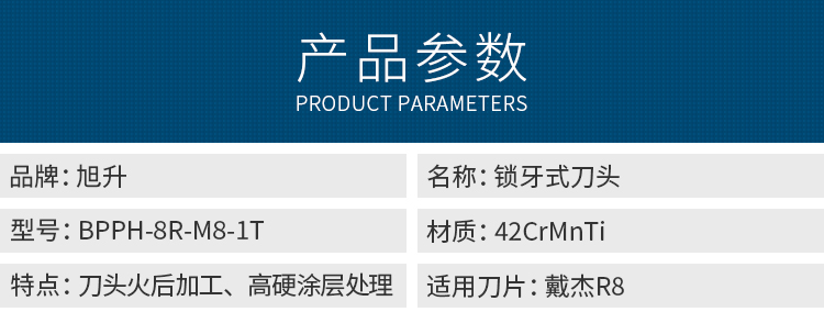 旭升-鎖牙式刀頭-BPPH-8R-M8-1T(抗震刀頭)