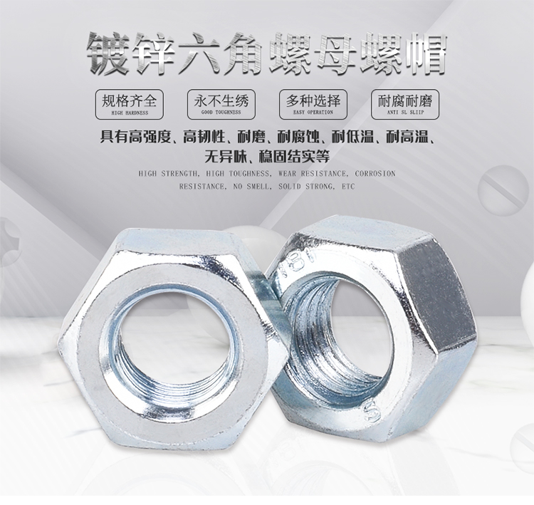 博騰五金-六角螺母-BG6170-8級-六角螺母藍(lán)白鋅