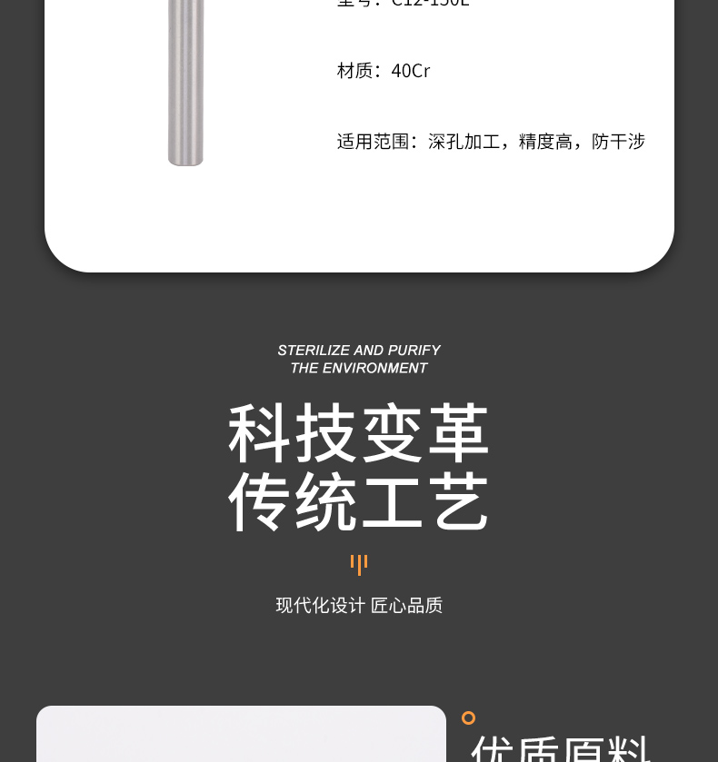 • 用途:深孔加工,精度高,防干涉