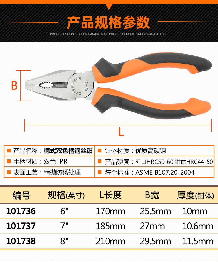 德式雙色柄鋼絲鉗