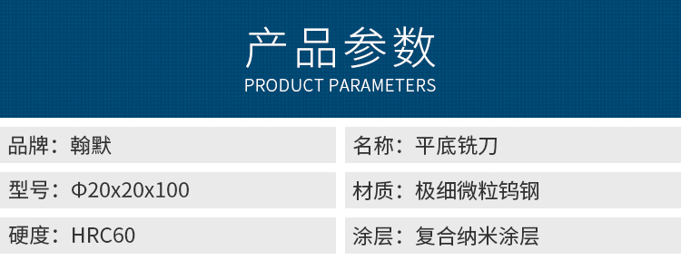 翰默-平底銑刀-Φ20x20x100(HRC60)