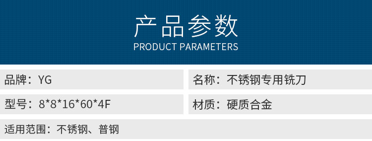 友晟-不銹鋼專用銑刀-YG-V7-8X8X16X60X4F