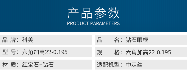 科美-鉆石眼模-六角加高22-0.195(紅寶石+鉆石)