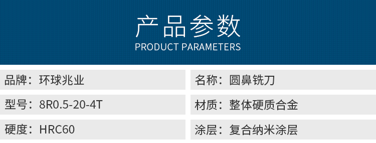 環(huán)球兆業(yè)-圓鼻銑刀-8R0.5-20-4T(HRC60)