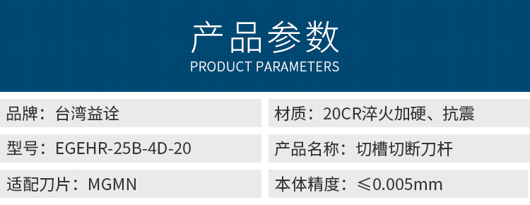 臺灣益詮-切槽切斷刀桿-EGEHR-25B-4D-20