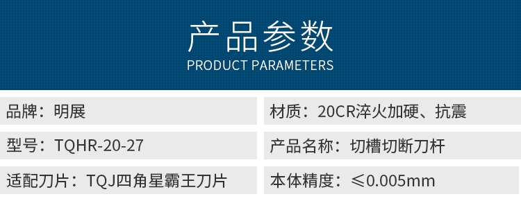 明展-切槽切斷刀桿-TQHR-20-27(特固克四角星霸王槽刀桿)